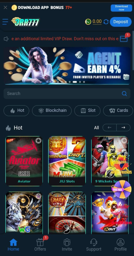 The app is also optimized to run smoothly on both high-end and budget Android devices, ensuring stable performance for most users. In addition to gameplay, 3RR777 Game offers easy deposit and withdrawal options using popular payment methods like Jazz Cash, Easy Paisa, and Bank Transfer. Real-time wallet updates let players easily track their balances and transactions, while daily bonuses, referral rewards and VIP benefits add even more fun to the overall gaming experience.
