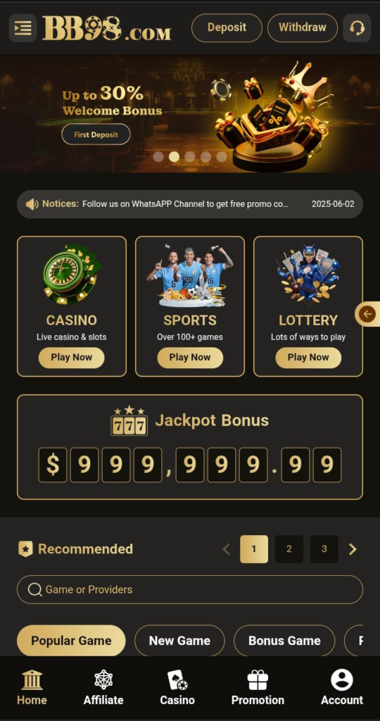 BB98 App offers a simple and well-organized layout, enabling users to access games, wallet features, and account settings easily. Beginners and experienced players can navigate without confusion.